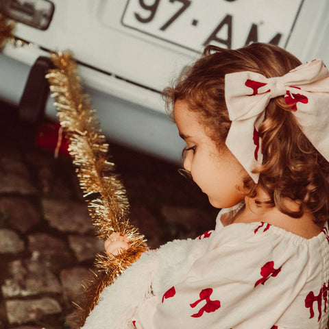 Hárband með stórri hör slaufu - Cream