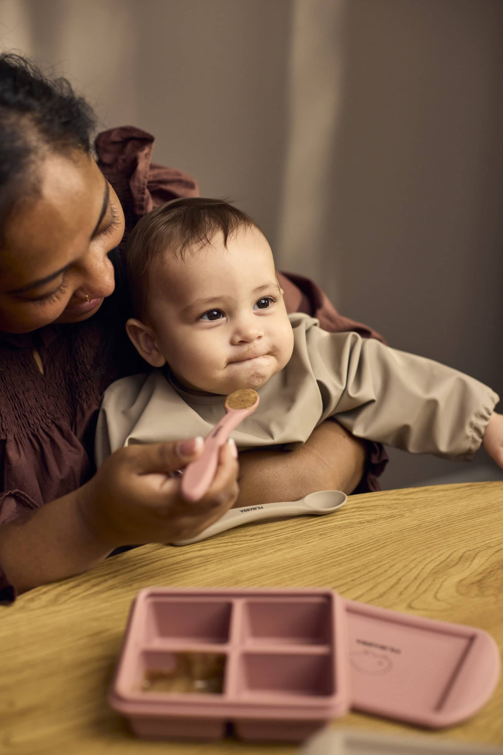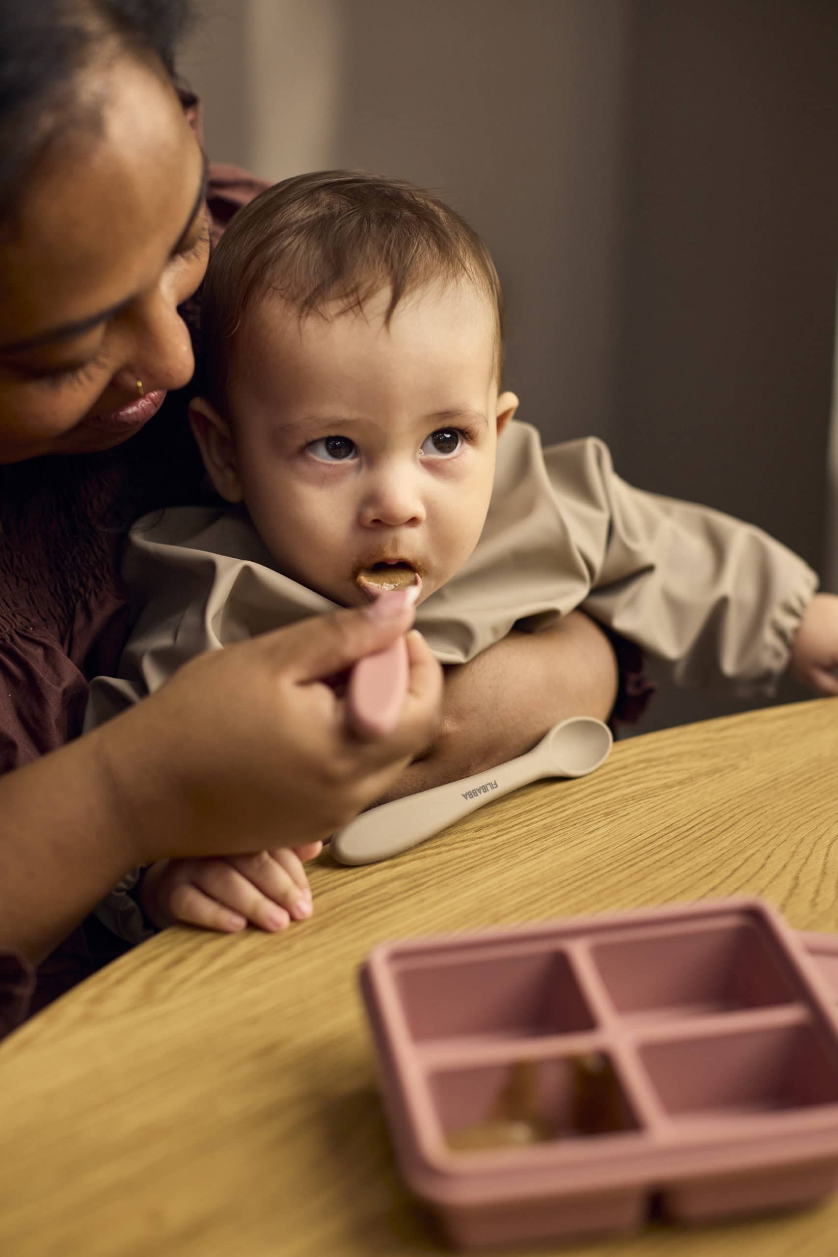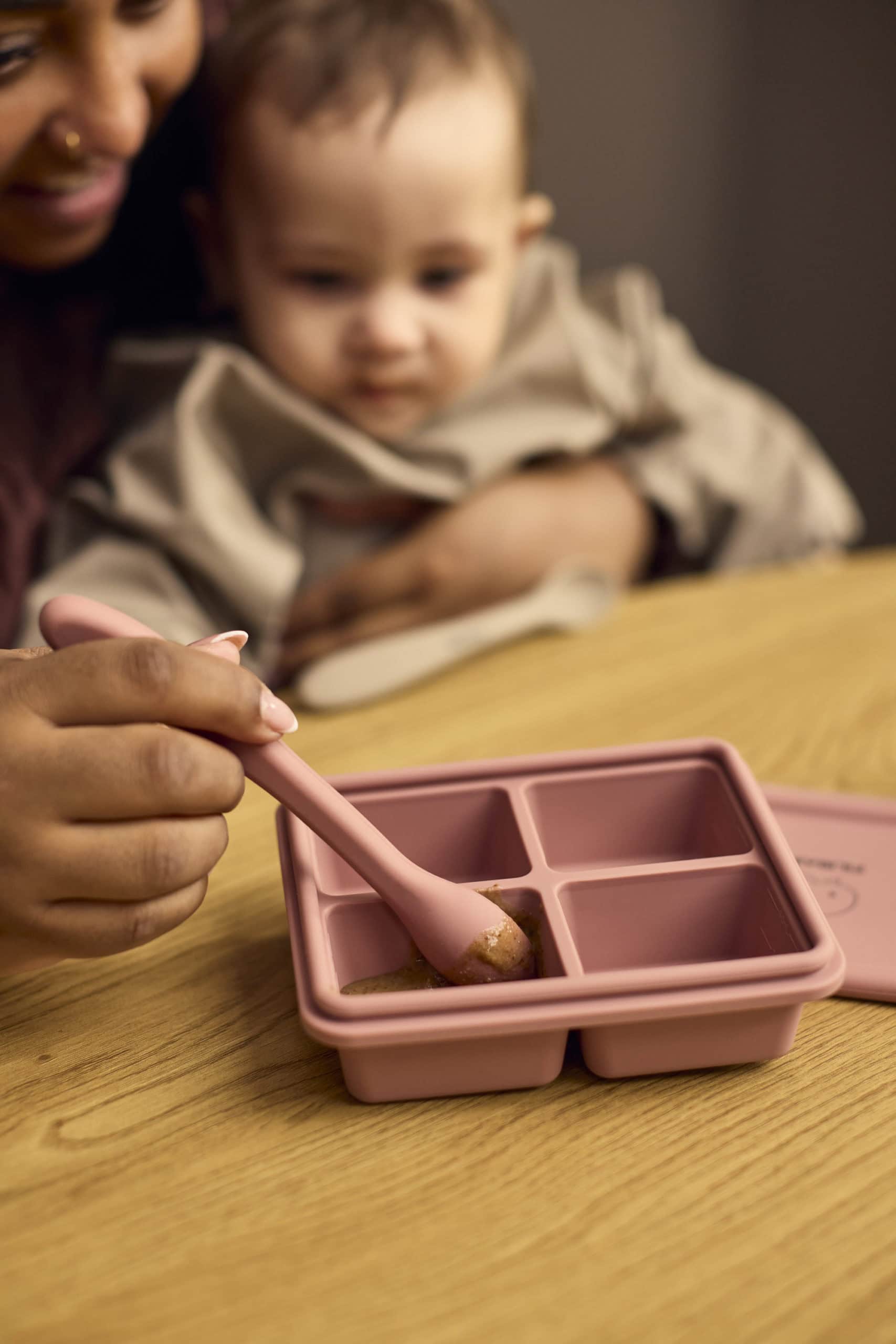 Ungbarnaskeiðar, 3 saman í pakka, sem eru hannaðar með litla munna í huga og eru með mjúku sílikon yfirborði til að vernda viðkvæmt tannhold og tennur. Langa handfangið er fullkomið til að mata barnið og til að ná auðveldlega ofan í krukkur. Skeiðarnar eru úr matvælavottuðu sílikoni með plastkjarna fyrir aukinn stöðugleika.