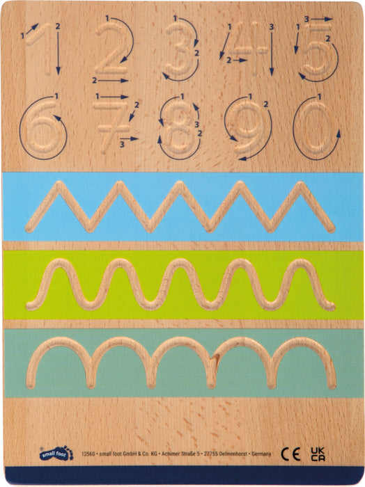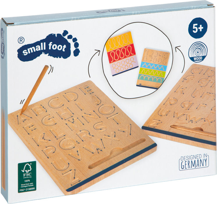 Tilvalin byrjun til að læra að skrifa! Með þessu sterka, hágæða skrifbretti úr FSC® 100% vottuðum við geta leikskóla- og grunnskólabörn æft sig í skrift. Skrifþjálfunarsettið inniheldur tvö handhæg, tvíhliða viðarbretti sem bjóða upp á grunn fyrir fjölhæfa og gagnvirka námsreynslu. Tvö viðar skrifáhöld í blýantsformi fylgja með sem gefa höndum ungra barna skriftartilfinningu. Með þessu námssetti geta börn ekki aðeins lært að rekja og skrifa hástafi og lágstafi stafrófsins, heldur einnig tölur frá 0 upp í 9. Einnig æfa þau að draga eftir ýmsum hreyfingum svo sem bogum, krókum og beinum línum til að þjálfa og þróa fínhreyfingar skrifhandarinnar.