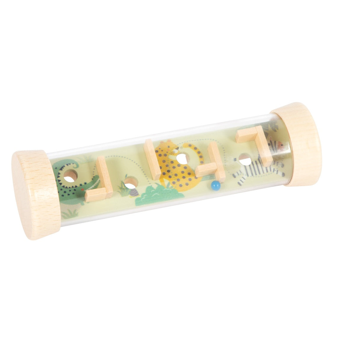 Skemmtilegt leikfang með spilum á sitthvorri hliðinni, völundarhús og kúluþraut. Barnið æfir einbeitingu, þrautseigju og þolinmæði við að stýra litlu kúlunum í gegnum völundarhúsin.