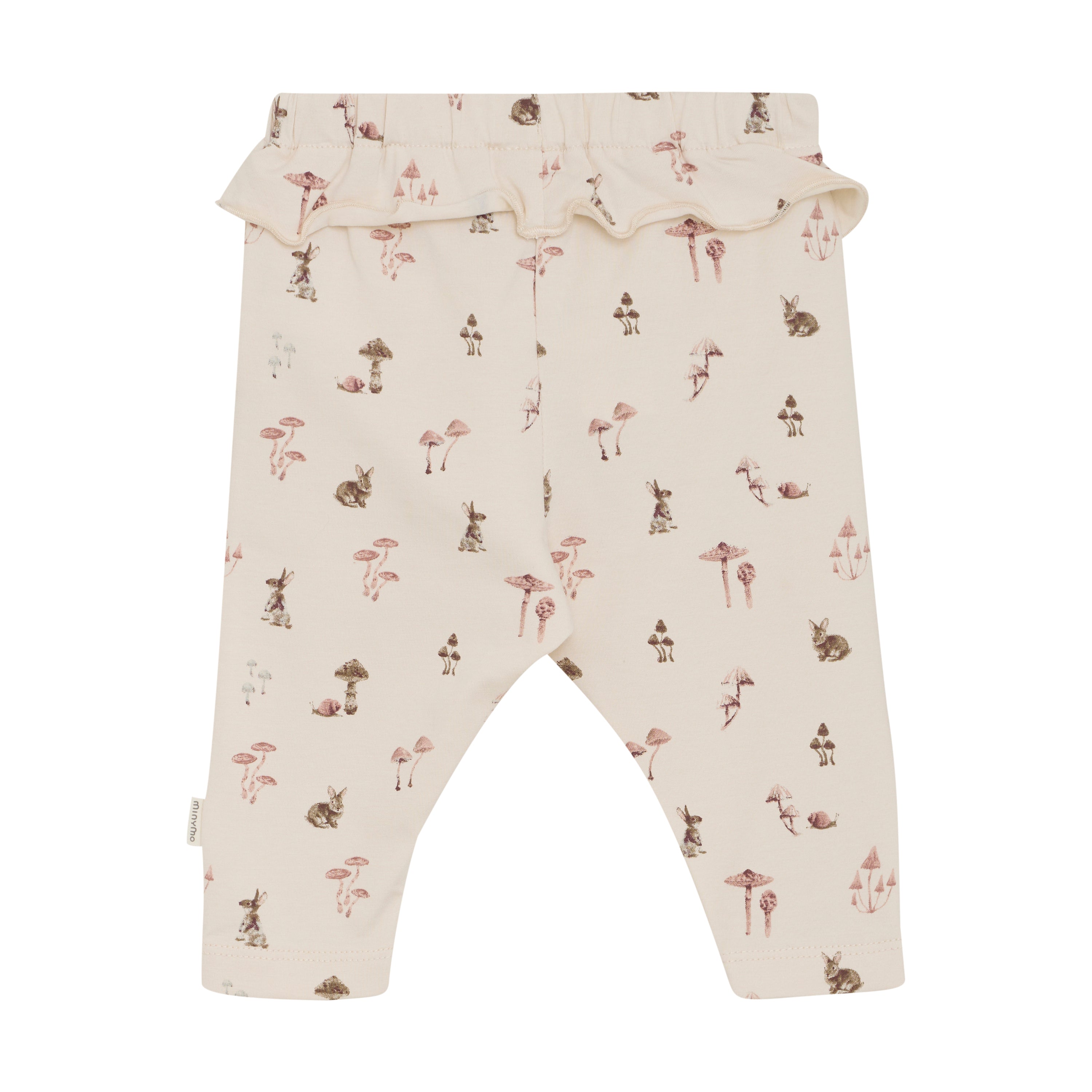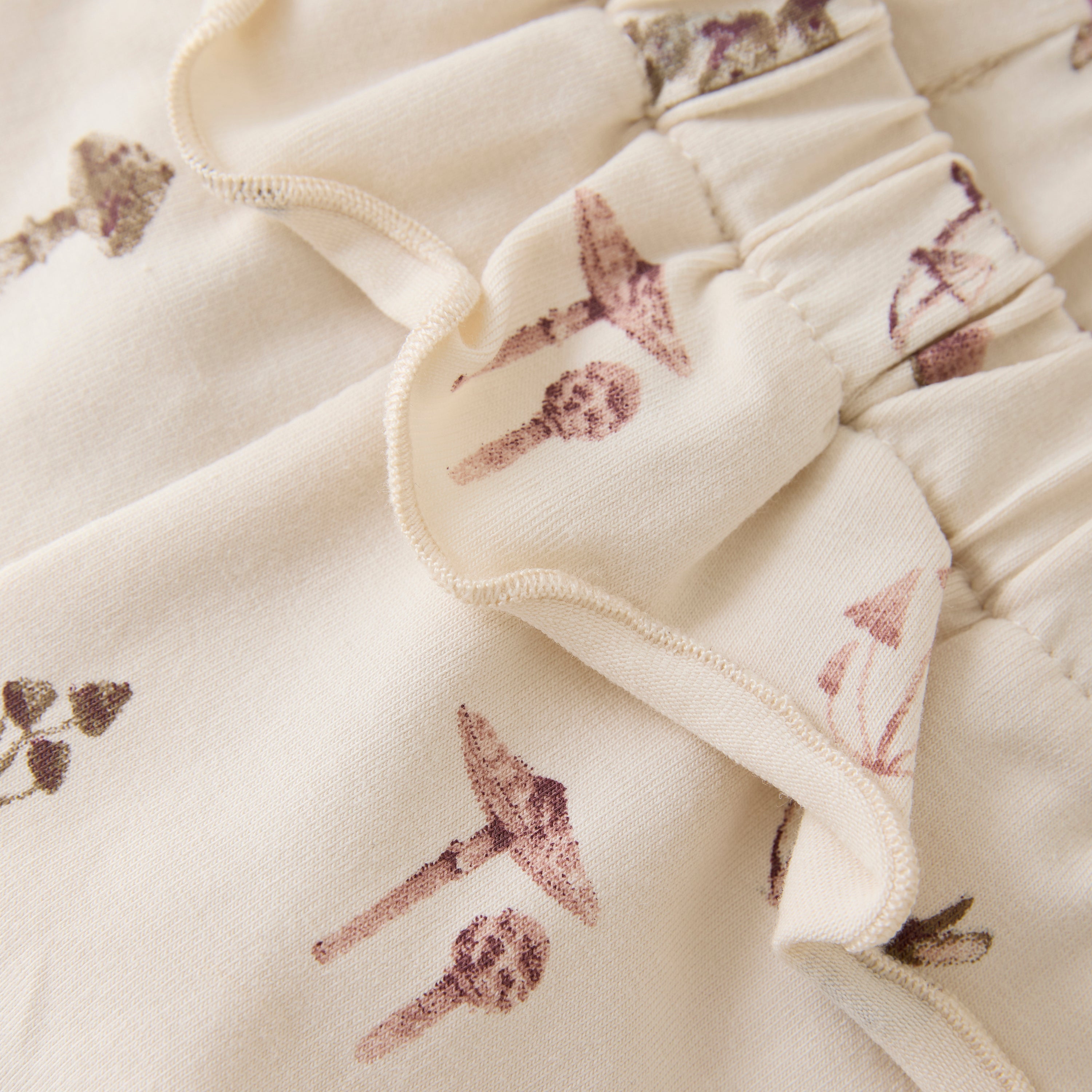 Fallegar buxur úr mjúku bómullarefni með krúttlegu mynstri. Pífur í mittinu gefa buxunum extra sætt yfirbragð.